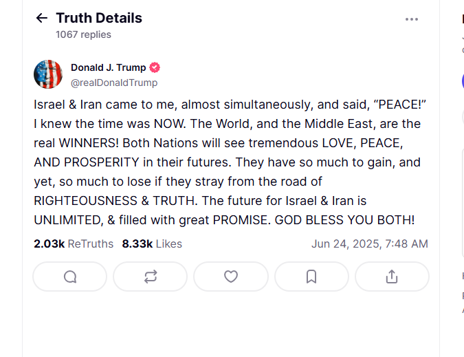 ट्रंप ने किया ईरान-इजरायल के बीच सीजफायर का ऐलान, ईरान ने फिर भी किए अटैक